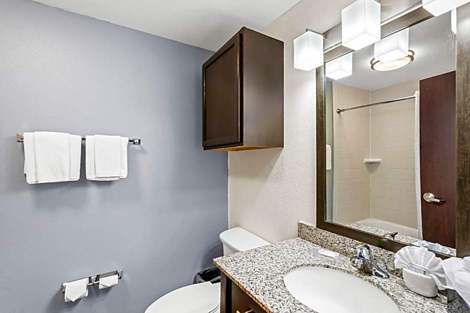 The suite includes a private bathroom equipped with a bath, a shower and a hairdryer. Guests can make meals in the kitchen that is equipped with a refrigerator, kitchenware, a microwave and a tea and coffee maker. This wheelchair accessible suite features air conditioning, a seating area with a flat-screen TV and an adapted bath.